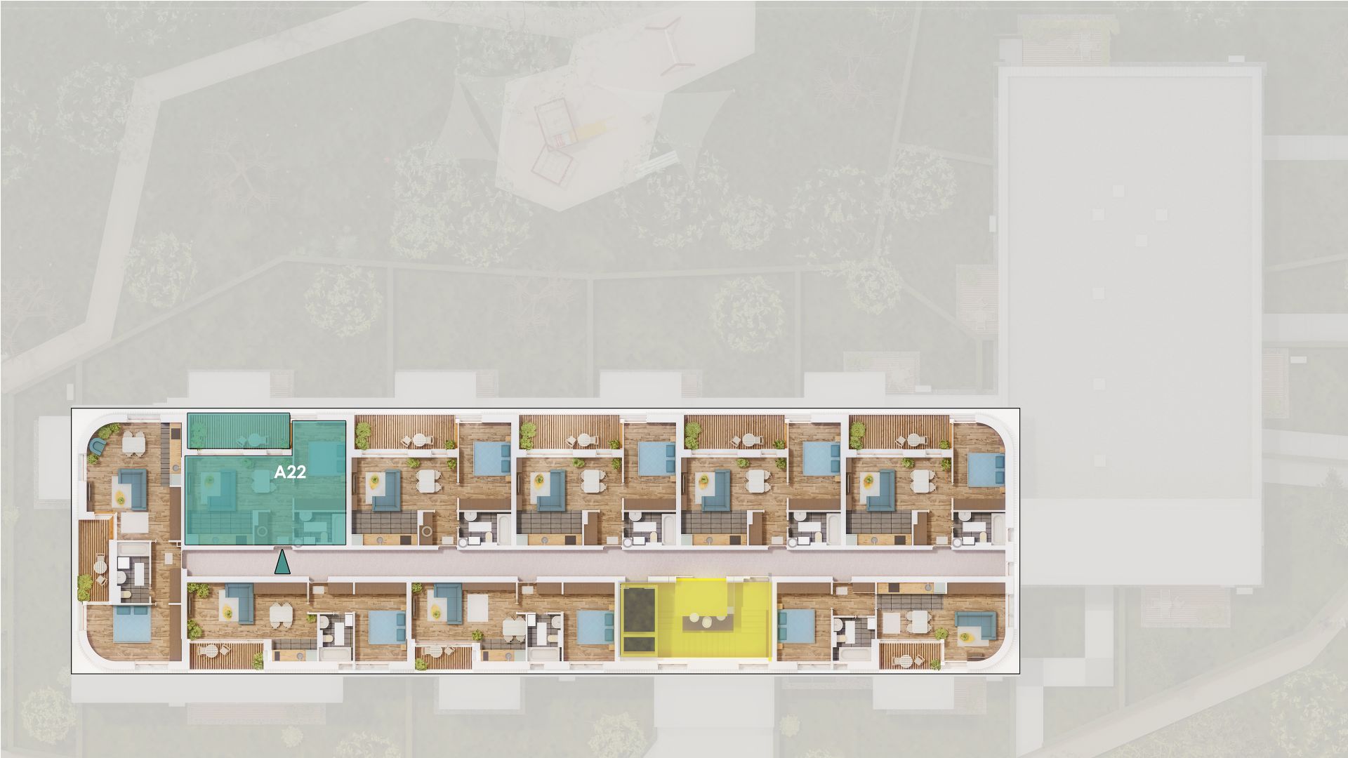 Az alapterületi adatok vakolatlan falak közötti méretek. A kivitelezés során kismértékű méretváltozás lehetséges. Ezen dokumentációban közölt információk tájékoztató jellegűek és nem képezik az adásvételi szerződés mellékletét. A lakás felszerelései a tájékoztató műszaki leírás szerintiek. A bútorok és berendezési tárgyak illusztrációk. A látványterveken nem a standard kialakítás szerinti kiépítettség szerepel.